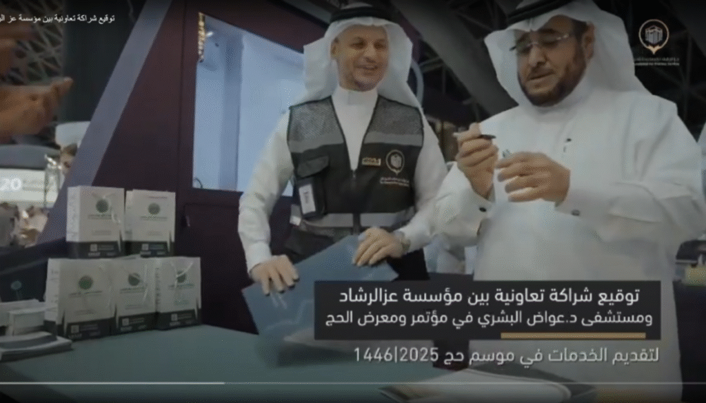 توقيع شراكة تعاونية بين مؤسسة عز الرشاد ومستشفى د.عواض البشري في مؤتمر ومعرض الحج لتقديم الخدمات في موسم حج 1446/2025